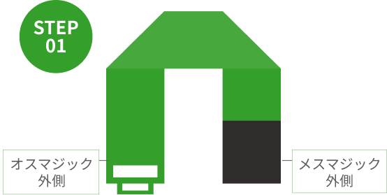 マジックテープを取り外し、メスマジック側を商品上面に置きます。