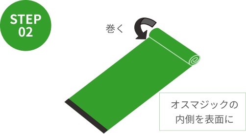 引手紐側からオスマジック内側を表面にし、ロール状に巻いていきます。