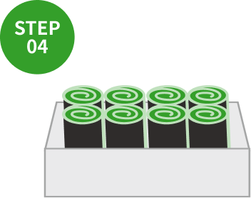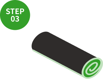 ロール状に巻き終わり後、コンテナ等に収納します。