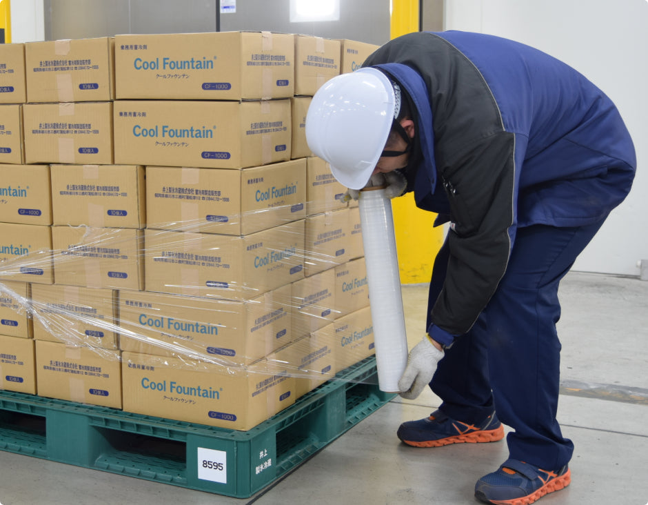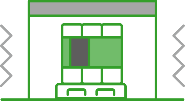 ストレッチフィルムでは、巻く作業の際に荷物の陰に隠れてしまい、フォークリフトの追突事故が…。そんなリスクを防ぎます。